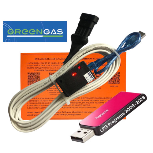Кабель для діагностики та налаштування ГБО GREENGAS на чипі FTDI з індикацією плюс флешка з програмами ГБО та драйверами